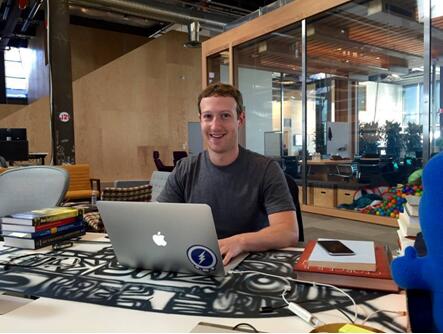 Facebook創(chuàng)始人扎克伯格的辦公桌,整體桌面是非常炫酷黑白色調(diào)的涂鴉,喜歡的人會說懂設(shè)計,保守的人會覺得亂七八糟。筆記本左邊是5本書,右邊是一本超大畫冊,之后又是一摞書,此外還有一個藍(lán)色毛絨玩具、自己卡通型的模型、孩子的照片以及幾個塑料水瓶。