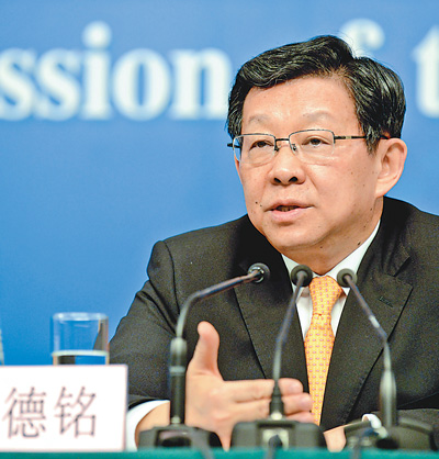 8日上午,十二屆全國(guó)人大一次會(huì)議新聞中心舉行記者會(huì),商務(wù)部部長(zhǎng)陳德銘就“發(fā)展國(guó)內(nèi)外貿(mào)易和促進(jìn)經(jīng)濟(jì)合作”的相關(guān)問(wèn)題回答中外記者提問(wèn)。