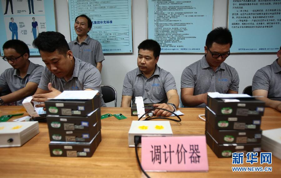 6月9日,出租車公司的工作人員在調(diào)試計(jì)價(jià)器。6月10日,北京市出租車開始實(shí)行新的租價(jià)標(biāo)準(zhǔn),起步價(jià)調(diào)整為13元/3公里,基本單價(jià)2.3元/公里。(資料圖 新華社記者李文攝)