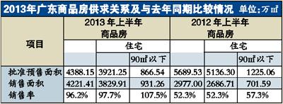 昨日,廣東省房協(xié)市場分析課題組發(fā)布《2013年上半年廣東房地產(chǎn)市場分析》,數(shù)據(jù)顯示,今年上半年,90平方米以下商品住宅批準(zhǔn)預(yù)售面積866.54萬平方米,同比減少29.3%,下滑速度超過整個預(yù)售面積的下滑速度(20%)。而90平方米以下商品住宅的銷售率高達107.5%,比去年同期提高50.2個百分點,高于整體商品住宅9.8個百分點,小戶型產(chǎn)品供求關(guān)系更為緊俏。