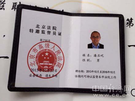 圖為潘石屹法院特邀監(jiān)督員聘書