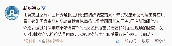 食藥監(jiān)總局、衛(wèi)計委:未發(fā)現(xiàn)康泰公司疫苗存在質(zhì)量問題