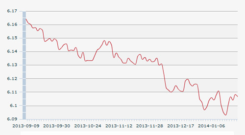 據(jù)央行網(wǎng)站消息,中國人民銀行授權(quán)中國外匯交易中心公布,2014年1月21日銀行間外匯市場人民幣匯率中間價(jià)為:1美元對人民幣6.1066元,1歐元對人民幣8.2705元,100日元對人民幣5.8385元,1港元對人民幣0.78729元,1英鎊對人民幣10.0261元,1澳大利亞元對人民幣5.3704元,1加拿大元對人民幣5.5702元,人民幣1元對0.54538林吉特,人民幣1元對5.5548俄羅斯盧布。