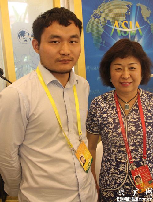 玖龍紙業(yè)(控股)有限公司董事長(zhǎng)張茵接受央廣網(wǎng)記者專訪,右為張茵。