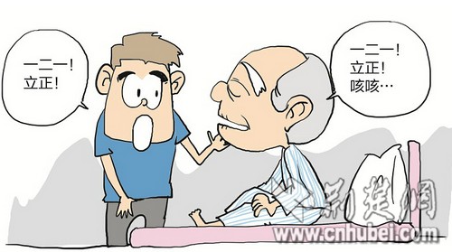 “一二一!立正!稍息!”昨天上午,在武漢市第一醫(yī)院院子里,響起了響亮的口號聲,腫瘤科的醫(yī)務(wù)人員和患者們對這口號聲都習(xí)以為常,大伙都知道,這是張先生帶著他的岳父張老爹來做治療了。