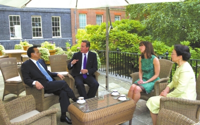 卡梅倫表示,中國的崛起具有世界意義。英方高度重視英中關(guān)系,愿與中方相互尊重,坦誠對話,深化經(jīng)貿(mào)、金融、教育、科學(xué)、核電、高鐵等領(lǐng)域合作。歡迎更多中國企業(yè)赴英投資、更多中國學(xué)生赴英留學(xué)。