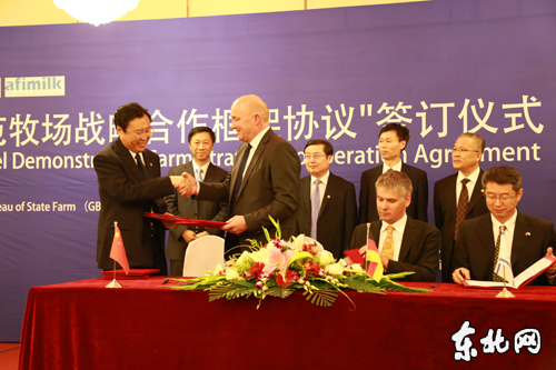 此次與省農(nóng)墾總局簽約的斯諾金公司是德國著名的奶牛場飼料攪拌機的企業(yè),在德國的市場占有率第一。德國薩諾公司是享譽歐洲的動物營養(yǎng)制品著名品牌。以色列阿菲金公司一直保持著在牛場管理及擠奶點硬件設(shè)備領(lǐng)域的世界技術(shù)領(lǐng)先地位。農(nóng)墾總局與這三家公司深入合作,在8511農(nóng)場和趙光農(nóng)場共同建設(shè)兩個具有世界一流水平的“中德以示范牧場”,并打造成為全國的現(xiàn)代化牧場樣板。