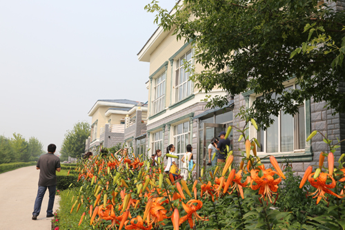 東北網(wǎng)7月25日訊(記者侯巍 孫曉銳 鄧博文) 綠樹成蔭,鮮花盛開,別墅小區(qū)掩映其中,給火熱七月帶來陣陣清爽。25日,第八屆全國網(wǎng)絡媒體龍江行采訪團來到農(nóng)墾九三管局大西江農(nóng)場,標準化的住宅小區(qū)令采訪團成員嘆為觀止。這個占地13公頃,綠化面積達8.13公頃,廣場面積達1.47公頃的別墅群,2002年動工, 2009年全部交付使用,是墾區(qū)首個百棟標準化住宅小區(qū)。