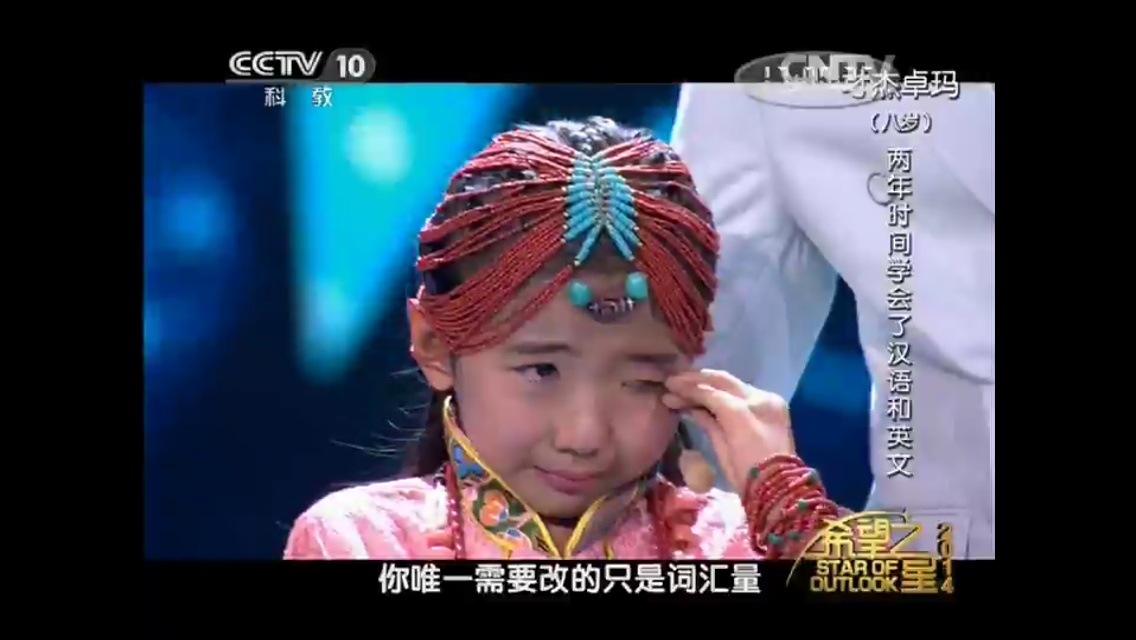 8歲的才杰卓瑪,來(lái)自青海玉樹(shù),由于當(dāng)?shù)氐慕逃龡l件有限,卓瑪?shù)膶W(xué)校里面沒(méi)有英語(yǔ)課程,6歲以前小卓瑪也既不會(huì)說(shuō)中文更不會(huì)說(shuō)英文。在過(guò)去的兩年時(shí)間,在媽媽的教育下把英語(yǔ)說(shuō)到了一般小學(xué)生的水平,卻在淚水中必須面對(duì)被淘汰的殘酷結(jié)局。