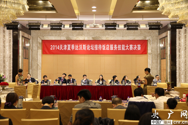 央廣網(wǎng)天津8月15日消息(記者賈立梁 鄭凱)為提高天津市旅游飯店服務(wù)質(zhì)量,做好2014天津夏季達沃斯論壇的接待服務(wù)工作,天津市旅游局組織舉辦了此次“2014天津夏季達沃斯論壇接待飯店服務(wù)技能大賽”,今天大賽總決賽在津利華大酒店舉行。