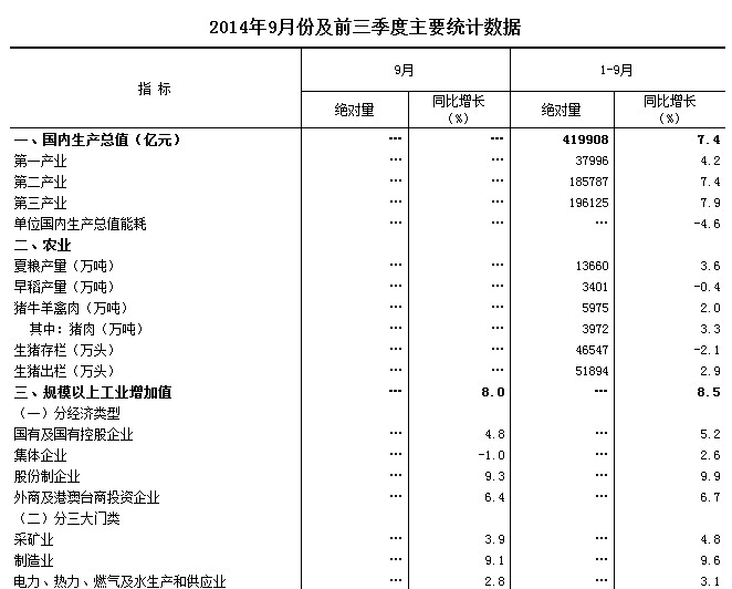 2014年9月份及前三季度主要統(tǒng)計(jì)數(shù)據(jù)