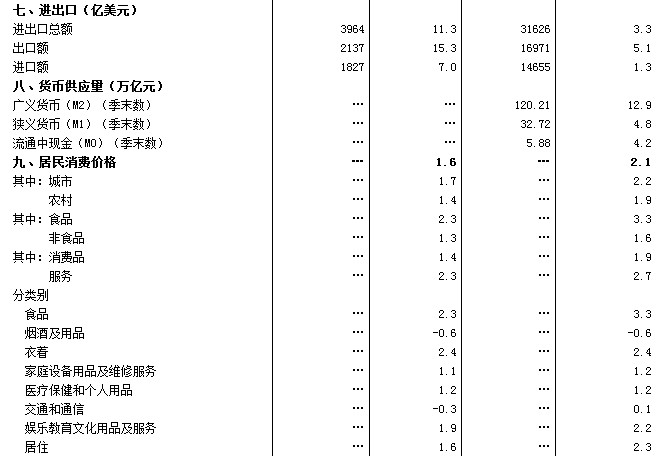 。9)進(jìn)出口數(shù)據(jù)來源于海關(guān)總署;貨幣供應(yīng)量、人民幣存貸款、社會(huì)融資規(guī)模數(shù)據(jù)來源于中國(guó)人民銀行。