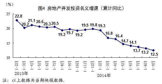 前三季度,全國(guó)房地產(chǎn)開發(fā)投資68751億元,同比名義增長(zhǎng)12.5%(扣除價(jià)格因素實(shí)際增長(zhǎng)11.7%),增速比上半年回落1.6個(gè)百分點(diǎn),其中住宅投資增長(zhǎng)11.3%。房屋新開工面積131411萬平方米,同比下降9.3%,其中住宅新開工面積下降13.5%。全國(guó)商品房銷售面積77132萬平方米,同比下降8.6%,其中住宅銷售面積下降10.3%。全國(guó)商品房銷售額49227億元,同比下降8.9%,其中住宅銷售額下降10.8%。房地產(chǎn)開發(fā)企業(yè)土地購置面積24014萬平方米,同比下降4.6%。9月末,全國(guó)商品房待售面積57148萬平方米,同比增長(zhǎng)28.0%。前三季度,房地產(chǎn)開發(fā)企業(yè)到位資金89869億元,同比增長(zhǎng)2.3%。