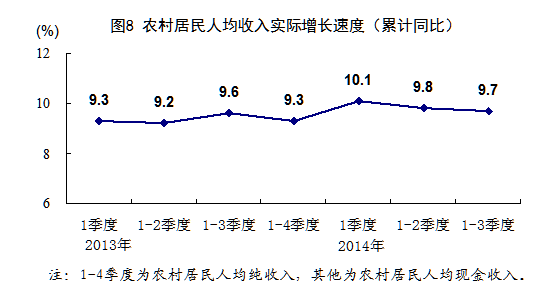 。7)2012年四季度,國(guó)家統(tǒng)計(jì)局實(shí)施了城鄉(xiāng)一體化住戶調(diào)查改革,統(tǒng)一了城鄉(xiāng)居民收入名稱、分類和統(tǒng)計(jì)標(biāo)準(zhǔn),在全國(guó)統(tǒng)一選取了16萬戶城鄉(xiāng)居民家庭,直接開展調(diào)查。在此基礎(chǔ)上,計(jì)算了城鄉(xiāng)可比的新口徑全國(guó)居民人均可支配收入。