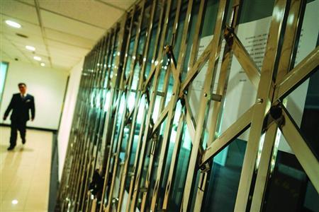 由于沒有開燈,室內(nèi)一片昏暗,看不清內(nèi)部情況。一些員工無奈地等在門口,盼望公司負(fù)責(zé)人會現(xiàn)身。
