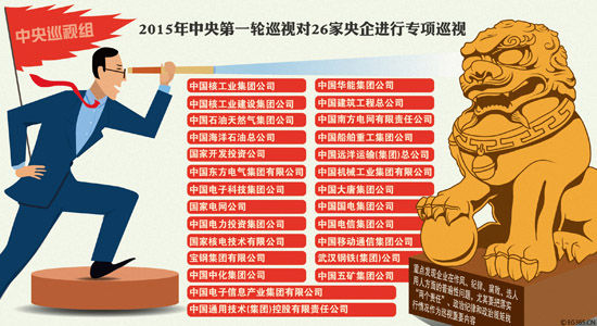 2月11日,據(jù)中紀委監(jiān)察部網(wǎng)站消息,經(jīng)中央批準,2015年中央第一輪巡視將對26家央企進行專項巡視。此輪巡視,將重點發(fā)現(xiàn)企業(yè)在作風(fēng)、紀律、腐敗、選人用人方面的普遍性問題,尤其要把落實“兩個責(zé)任”、政治紀律和政治規(guī)矩執(zhí)行情況作為巡視重要內(nèi)容。CFP供圖