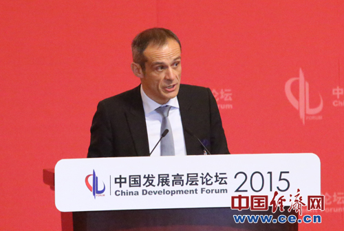 由國務院發(fā)展研究中心主辦、中國發(fā)展研究基金會承辦的“中國發(fā)展高層論壇2015”年會于2015年3月21日—3月23日在北京釣魚臺國賓館舉行,本屆論壇的主題為“新常態(tài)下的中國經濟”。中國經濟網全程直播報道。圖為施耐德電氣集團董事會主席、首席執(zhí)行官趙國華致辭。中國經濟網 施曉娟 攝