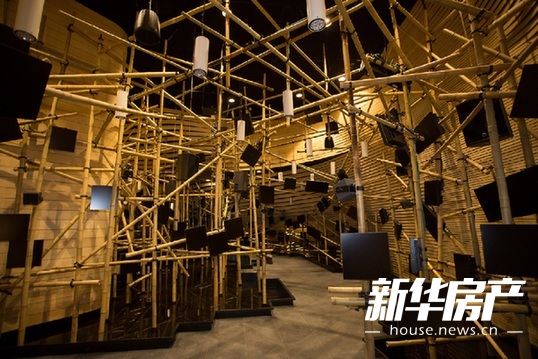 萬科館內(nèi)部,縱橫交錯的500根竹子與200塊屏幕組成了“媒體森林”,不間斷播放著中國60個城市的普通居民在社區(qū)食堂的真實生活片段,游客可以通過它們理解食堂所體現(xiàn)出的東方哲學,以及萬科對社區(qū)做出的承諾。