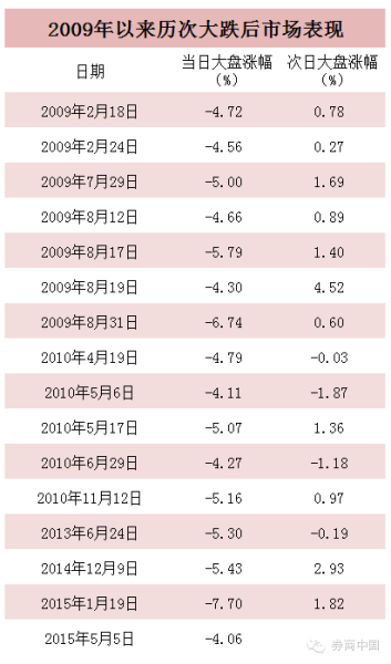 長線不論,只看短線,暴跌之后卻并不一定會繼續(xù)陰跌。小編查看了下2009年來大盤指數(shù)單日跌幅破4%的數(shù)據(jù),心里頓時樂觀不少。