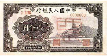 第一套人民幣于1948年12月1日由剛成立的中國人民銀行開始發(fā)行,這套人民幣由時(shí)任華北人民政府主席的董必武題寫了“中國人民銀行”行名。票面上兩方印章分別為“總經(jīng)理章”和“副經(jīng)理章”。 大部分先行發(fā)行的為民國紀(jì)年和一部分晚期發(fā)行的為公元紀(jì)年。