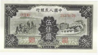 同后面歷套人民幣相比,由于歷史原因,第一套人民幣面額相當(dāng)大、設(shè)計(jì)上也花樣繁多,共12種面額62種版別。總面值為17.655萬元(折合現(xiàn)在人民幣為17元左右)。其中有二百元、伍佰元、一千元、五千元、一萬元以及最大的五萬元等面值。