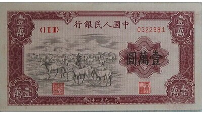 一萬元“牧馬圖”被稱為人民幣“幣王”