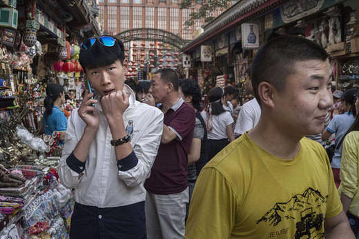 北京一家市場(chǎng)中正在行走的消費(fèi)者。中國(guó)政府依靠拉動(dòng)國(guó)內(nèi)需求和服務(wù)的方式保持在制造業(yè)和出口方面放緩的經(jīng)濟(jì)的平穩(wěn)增長(zhǎng)。(《華爾街日?qǐng)?bào)》網(wǎng)站)