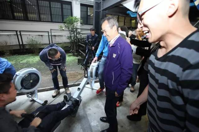 王石主席被場上“用生命在劃艇”的同學(xué)們所感染,親自示范起了如何標準操作測功儀,向前時身體要蜷縮,拉漿時腳要盡量前蹬,上身則盡量后仰。
