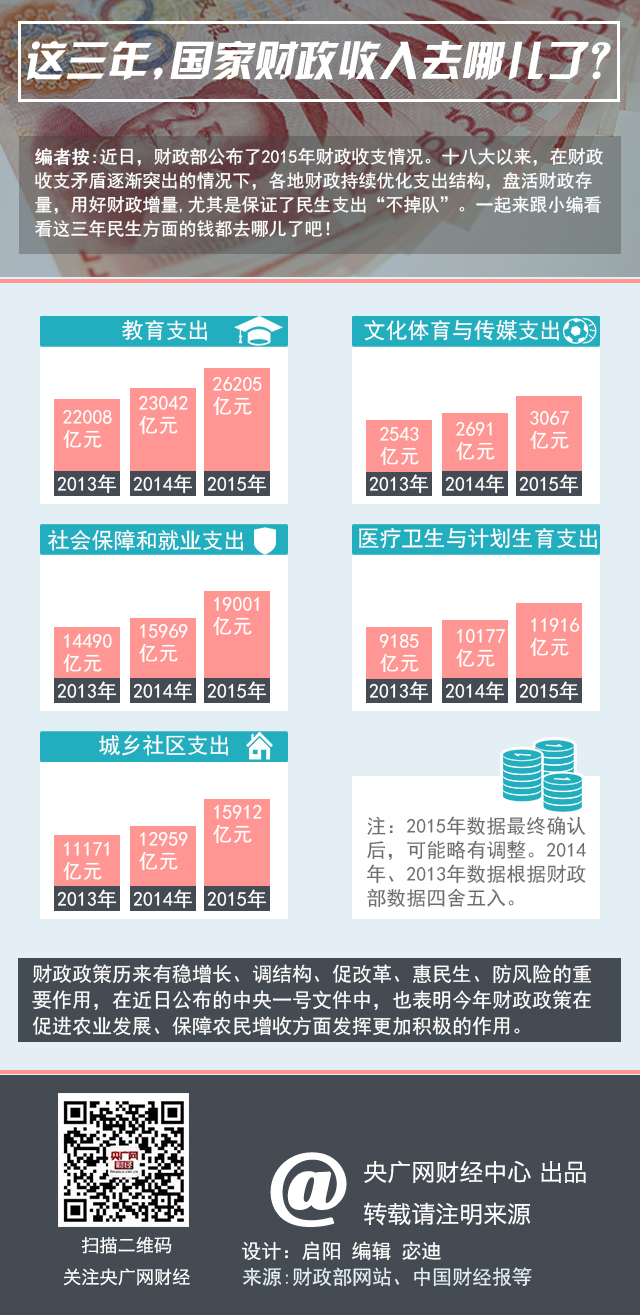 財(cái)政部今天公布數(shù)據(jù),2015年全國一般公共預(yù)算收入比上年增長8.4%,財(cái)政運(yùn)行基本平穩(wěn);與此同時,全國一般公共預(yù)算支出比上年增長15.8%,體現(xiàn)了積極財(cái)政政策下的支出力度。