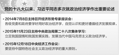 習(xí)近平同志多次強(qiáng)調(diào),要學(xué)好用好馬克思主義政治經(jīng)濟(jì)學(xué),并就發(fā)展當(dāng)代中國(guó)馬克思主義政治經(jīng)濟(jì)學(xué)發(fā)表重要講話,提出了新的歷史條件下堅(jiān)持和發(fā)展中國(guó)特色社會(huì)主義政治經(jīng)濟(jì)學(xué)的重大意義、目標(biāo)任務(wù)和基本原則,中國(guó)特色社會(huì)主義政治經(jīng)濟(jì)學(xué)的發(fā)展正在拓展新境界。