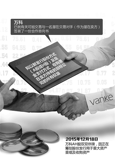 此前的1月29日,萬科在公告中表示,由于此次籌劃的重大資產重組涉及的資產、業(yè)務、財務等各方面核查工作量較大,無法確定3月18日前是否可以披露重大資產重組預案或報告書。其公告稱,如果不能,則公司將召開臨時股東大會審議公司A股股票繼續(xù)停牌至6月18日的議案。為謹慎起見,并確保申請繼續(xù)停牌的股東大會在2016年3月18日前召開完畢,董事會決議:如公司未能在2016年3月18日前披露重大資產重組預案或報告書或者復牌,在公司2016年第一次臨時股東大會審議通過相關議案的前提下,同意公司向深圳證券交易所申請公司A股股票因籌劃重大資產重組事項,繼續(xù)停牌至2016年6月18日。
