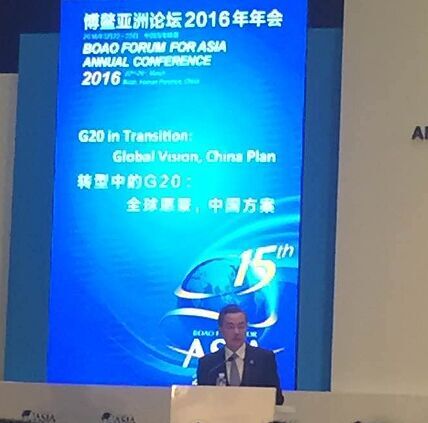 央廣網(wǎng)博鰲3月24日消息(記者于琦)博鰲亞洲論壇2016年年會于22日至25日在海南博鰲召開,本屆的主題是:《亞洲新未來:新活力與新愿景》。外交部部長王毅在《轉(zhuǎn)型中的G20:全球愿景,中國方案》分論壇中表示,目前G20有責(zé)任站出來,為世界經(jīng)濟指明方向。