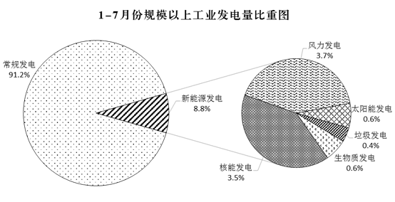 統(tǒng)計局:1-7月份新能源快速增長 比重明顯提高