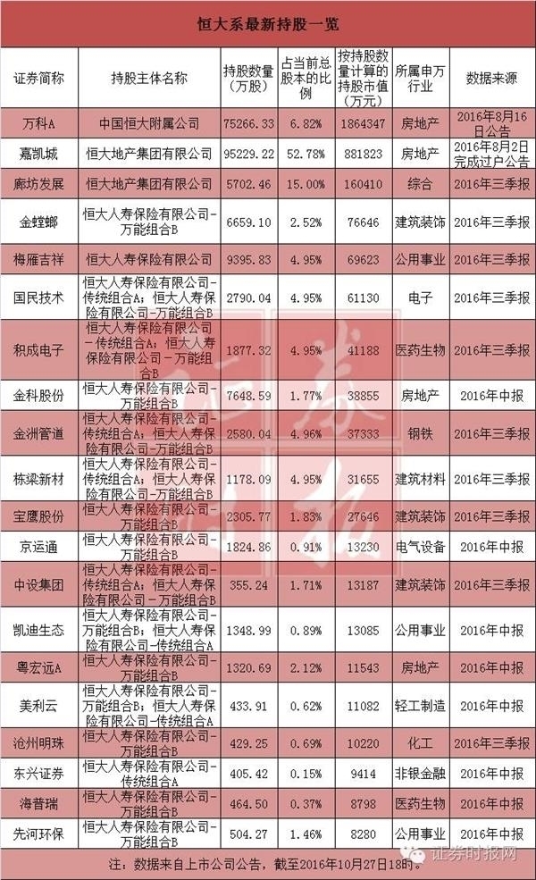 隨著近幾日A股公司三季報(bào)的集中披露,恒大人壽的身影也出現(xiàn)在多家公司的前十大股東之列。
