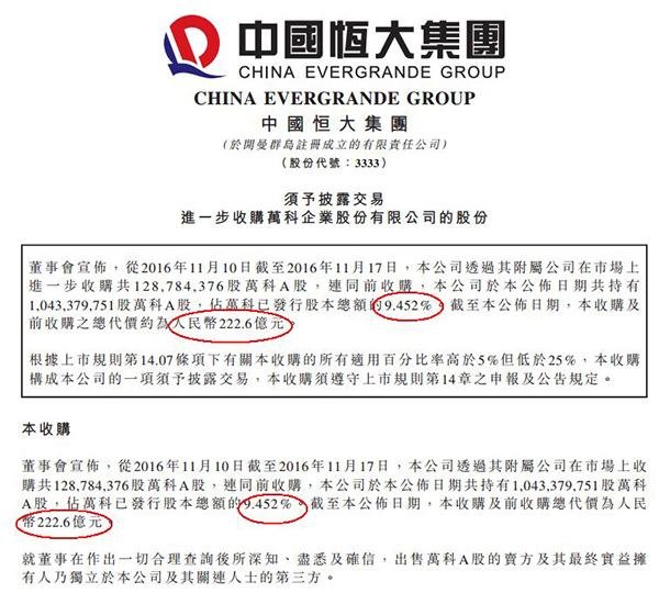 盡管狂砸超200億元,但在公告中,恒大依然堅持此次收購為公司看好萬科的財務(wù)投資。