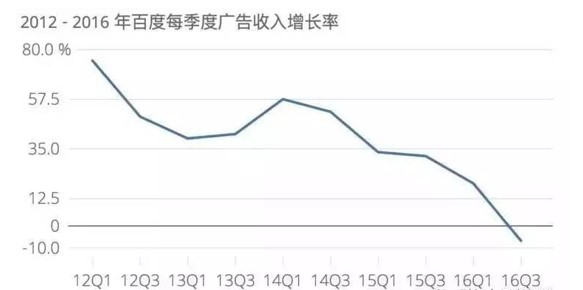 從魏則西事件開始,百度的聲譽(yù)一落千丈,一時(shí)間無數(shù)閱讀量“10萬+”的自媒體文章指責(zé)百度 “惡毒”,引發(fā)其賴以生存的廣告競價(jià)模式遭到全面整改,直接導(dǎo)致了百度廣告收入“立竿見影”的下降,相應(yīng)的公司財(cái)報(bào)變得難看了,股價(jià)也跌了。