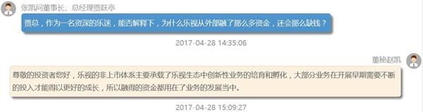 自去年樂視爆發(fā)現(xiàn)金流危機后,資金緊缺便一直是投資者最關心的問題。在這次投資者說明會上,仍然有投資者問“為什么樂視從外部融了那么多資金,還會那么缺錢?”