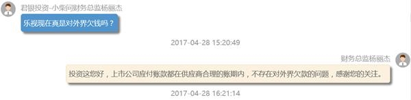 另外,去年以來,樂時拖欠供應商資金的消息也一直傳得沸沸揚揚,有投資者問:“樂視現(xiàn)在真是對外界欠錢嗎?”