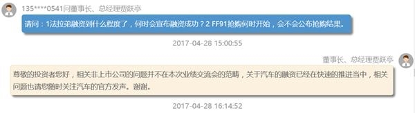 賈躍亭:相關謠言,尤其是惡意中傷的,公司相關部門已經(jīng)通過法律手段進行維權(quán),相信不久會有結(jié)果呈現(xiàn)。