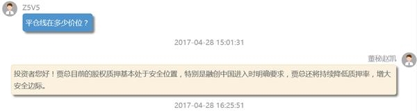 另外,對于市場關于賈躍亭股權(quán)質(zhì)押已逼近平倉線的傳聞,有投資者問,“平倉線在多少價位?”趙凱稱,賈躍亭目前的股權(quán)質(zhì)押基本處于安全位置,特別是融創(chuàng)中國進入時明確要求,賈躍亭還將持續(xù)降低質(zhì)押率,增大安全邊際。