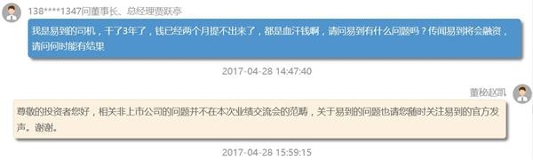 甚至有投資者腦洞大開,問道:“貴公司流動資金有36億,為什么不撥1-2個億解決易到的問題?”