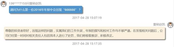 投資者:請問為什么第一份2016年年報中會出現(xiàn)“666666”?