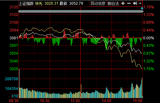 截至收盤,滬指報(bào)3052.79點(diǎn),跌0.90%,成交1816億元;深成指報(bào)9756.81點(diǎn),跌1.30%,成交2208億元;創(chuàng)業(yè)板指報(bào)1771.32點(diǎn),跌1.73%,成交625.1億元。