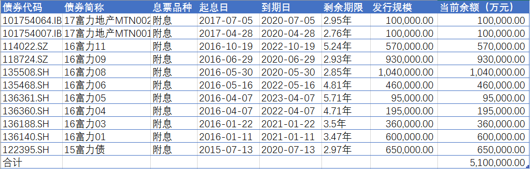 富力地產(chǎn)境內(nèi)存量債券
