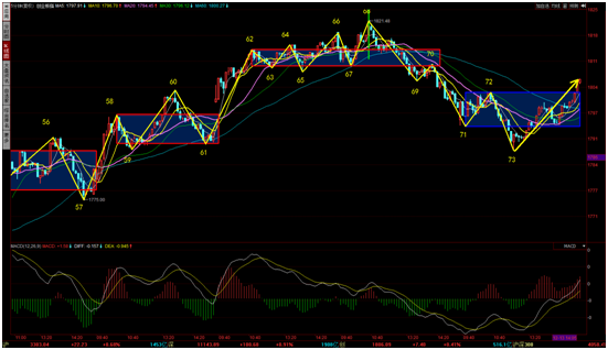 還有從上證50來看,上證50代表了權(quán)重股的走勢(shì),近期讓人不太放心,也是弱勢(shì)的30分鐘下跌中樞震蕩,如果始終無法向上擺脫下跌中樞,那么就需要防范震蕩完畢向下。