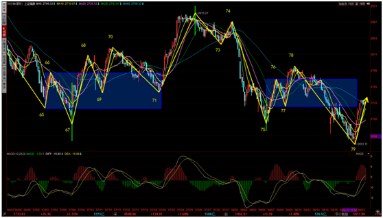 今天,創(chuàng)業(yè)板指也出現5分鐘線段的反彈,明天也有可能做出一個5分鐘上漲中樞,而5分鐘上漲中樞后的走勢比較關鍵,關注是否形成5分鐘中樞背馳。如果形成中樞背馳,5分鐘上漲線段就有可能結束。