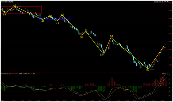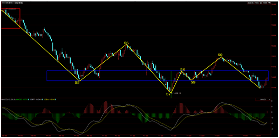 而對于創(chuàng)業(yè)板指,今天也出現(xiàn)了探底回升走勢,從30分鐘圖型來看,再度拉回之前55-58中樞。30分鐘60號點向下一筆調(diào)整是否結(jié)束,需要通過30分鐘驗證分型或者5分鐘二買確認(rèn)。目前5分鐘二買還沒有出現(xiàn),明天需要關(guān)注是否出現(xiàn)5分鐘二買。如果出現(xiàn)5分鐘二買,30分鐘出現(xiàn)驗證分型,那么創(chuàng)業(yè)板指有可能繼續(xù)維持30分鐘弱勢震蕩走勢。