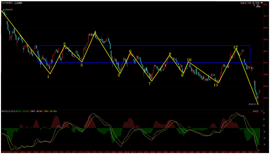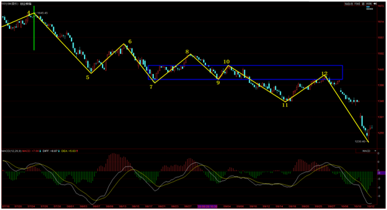 經過今天的探底回升之后,是否意味著指數(shù)調整結束了呢?目前還無法判定。在昨天的解盤中,我們提出上證指數(shù)接下來存在兩種可能演變,一種就是60分鐘一筆不再大幅向下,形成中樞背馳,那么就有可能形成中期低點。還有一種就是繼續(xù)大幅向下,60分鐘不背馳,在更低位置構筑一個新的60分鐘下跌中樞。目前這兩種可能性依然存在。今天指數(shù)并沒有大幅向下,而是出現(xiàn)了探底回升走勢,但這個反彈僅僅是5分鐘7號點向上反彈的一筆,接下來我們關注的重點就是60分鐘12號點向下調整的一筆調整何時結束,可以通過5分鐘二買和60分鐘驗證分型來把握。