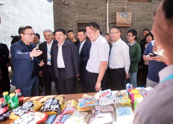 圖說(shuō):福州市市長(zhǎng)尤猛軍(前排中)考察“碼商集市”