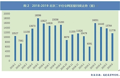 2018-2019北京二手住宅網(wǎng)簽量月度走勢 數(shù)據(jù)來源:我愛我家研究院